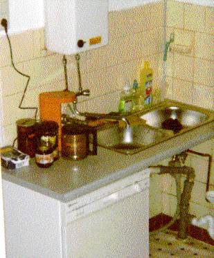 | ... kann man sich auch mal in gemütlicher Runde selbst verpflegen. Selbst ein Geschirrspüler existiert. (Kein Wunder, die Räume wurden ja vorher auch als Kneipe genutzt) |